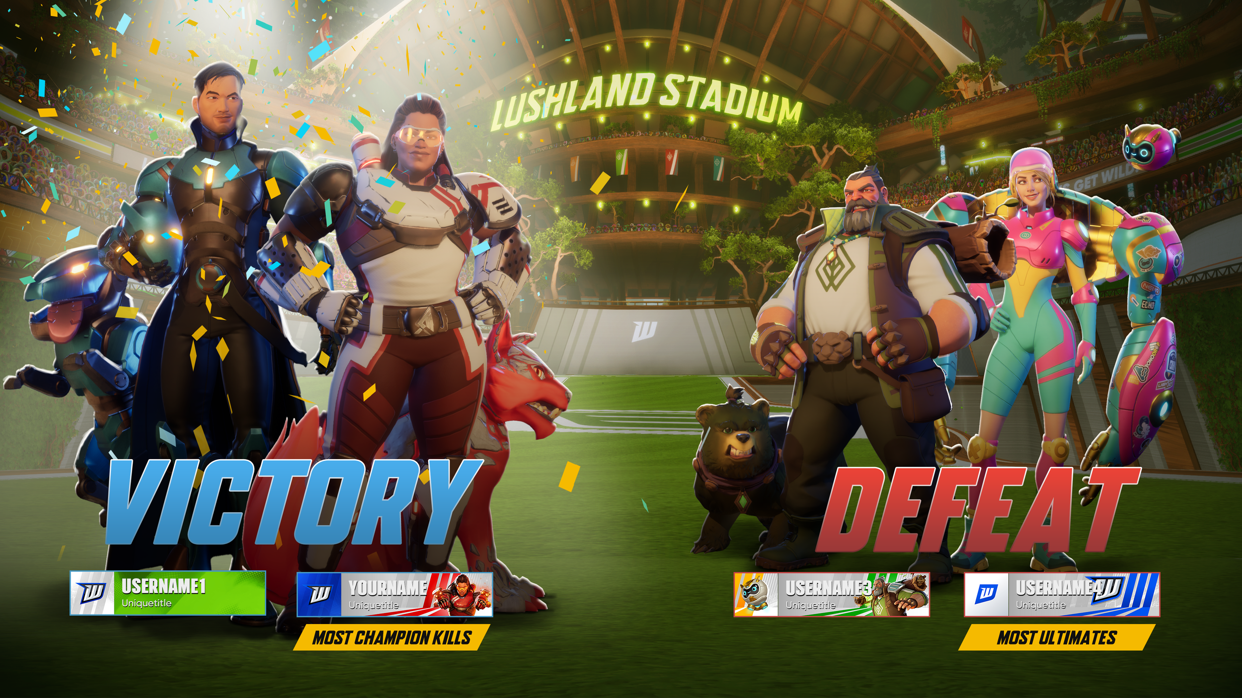 Wildcard is a MOBA type 3rd person action sports game, with an emphasis on card collection. Players choose a champion, and build decks of summonable characters to use against their opponents in futuristic arenas. The game went through several years of production and design changes in order to hone the experience and the work here shows several iterations of layouts, compositions, and styles as we progressed to the final result.